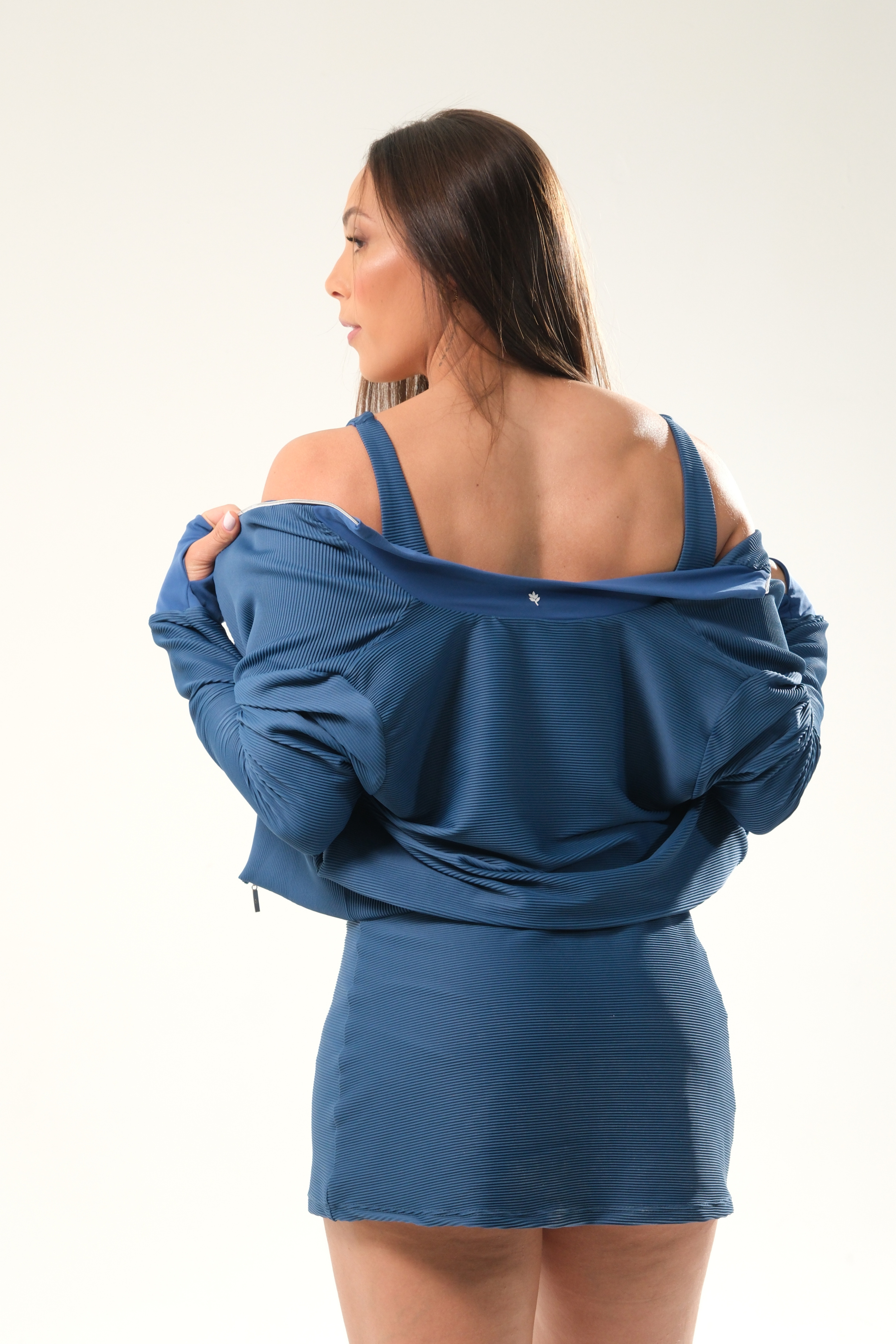 A Jaqueta Sers Blue Texture combina conforto e elegância em um design atemporal que transita com leveza do treino ao dia a dia.